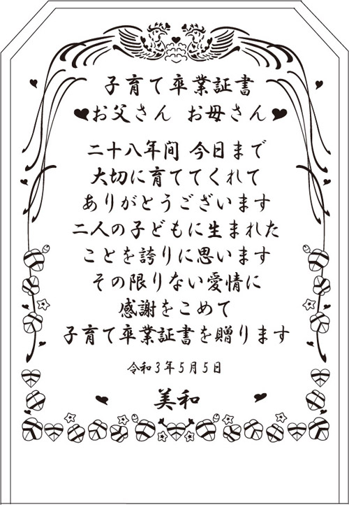 結婚式両親へプレゼント贈呈 に人気の子育て卒業証書 感謝状